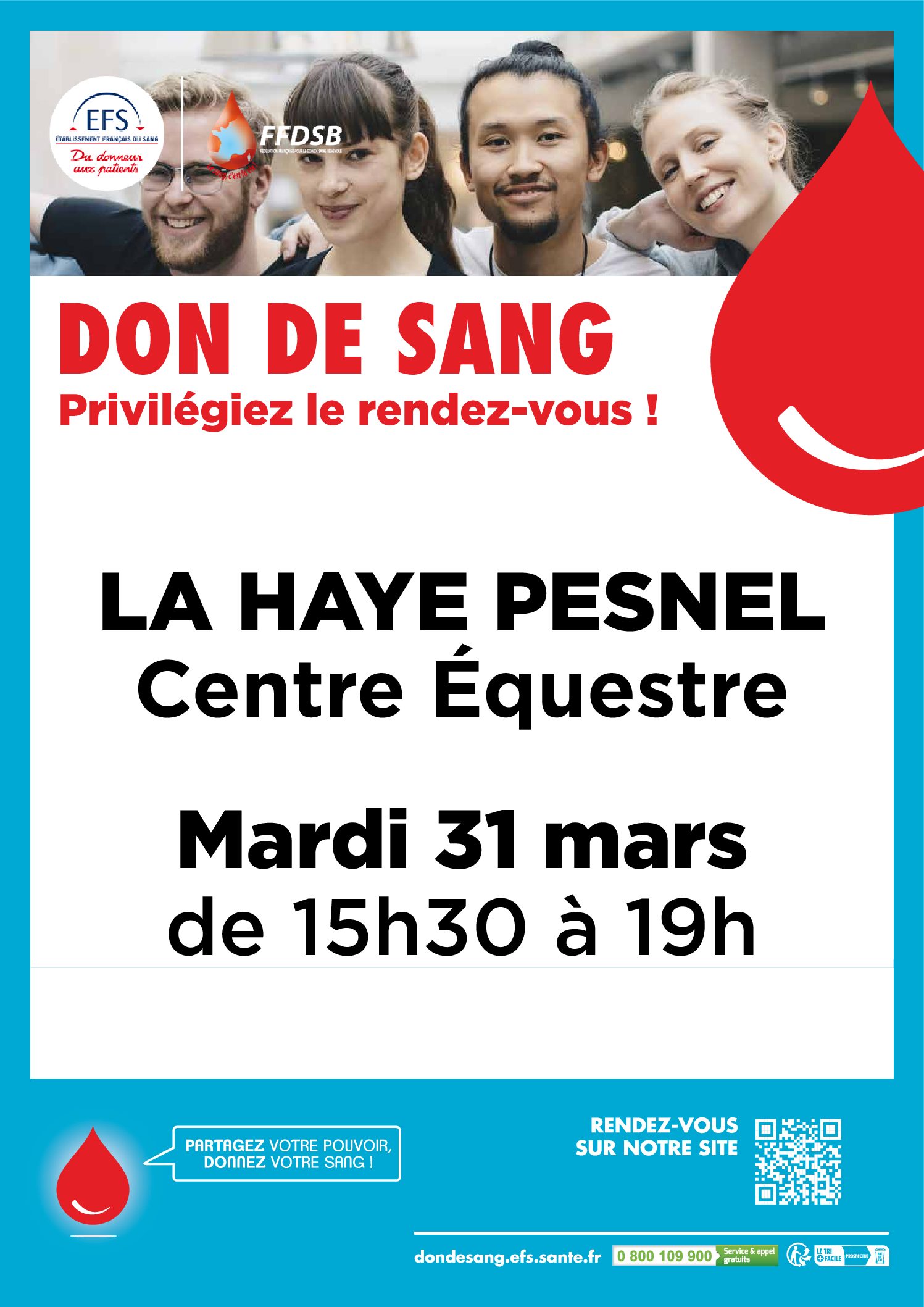 Notre équipe vous attend mardi 31 mars de 15h30 à 19h au centre équestre de LA HAYE PESNEL https://efs.link/Z98rp